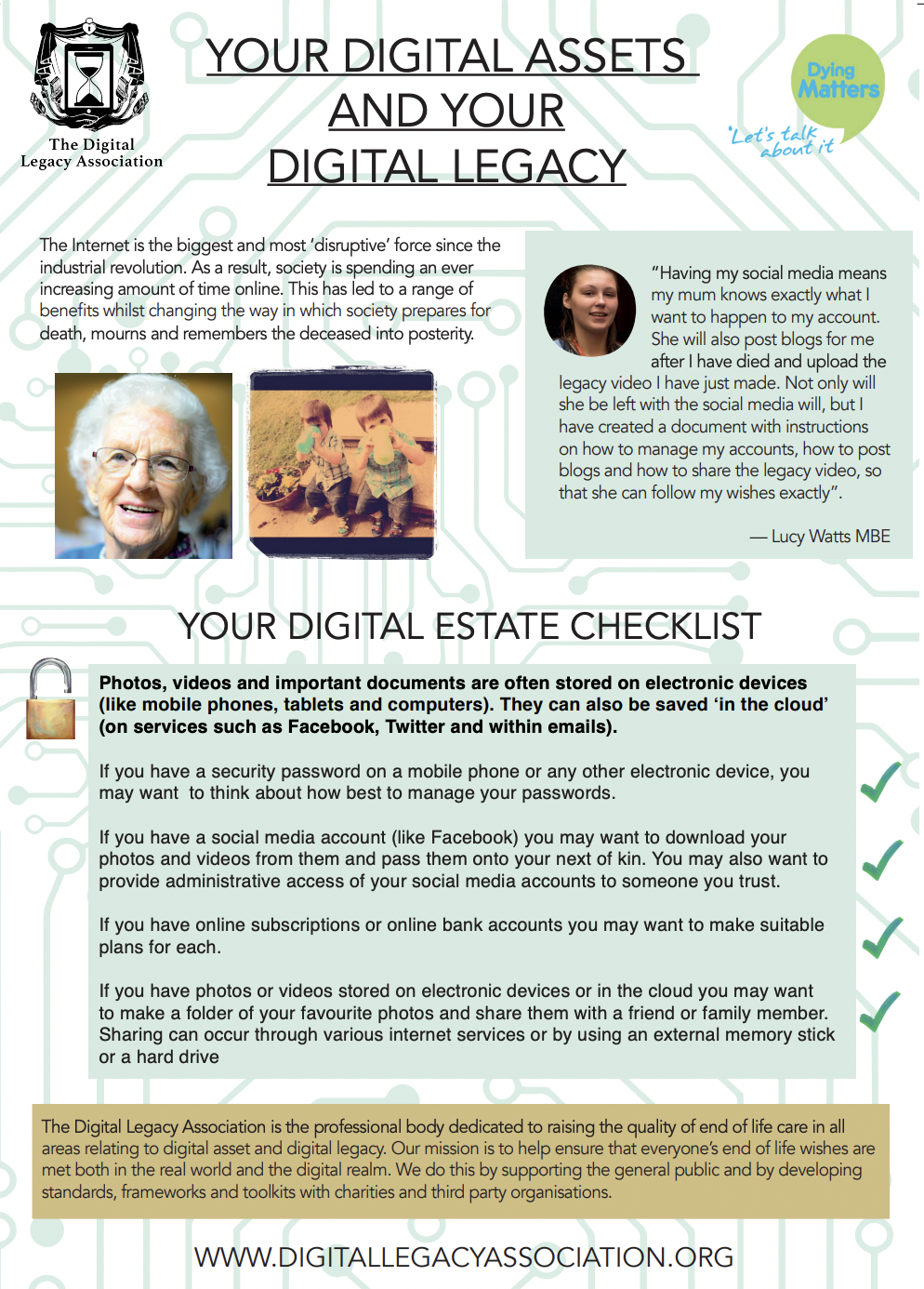- Digital Legacy Association – Sorting Out Your Digital Assets and Digital Legacy (Dying Matters Awareness Week 2026 version)